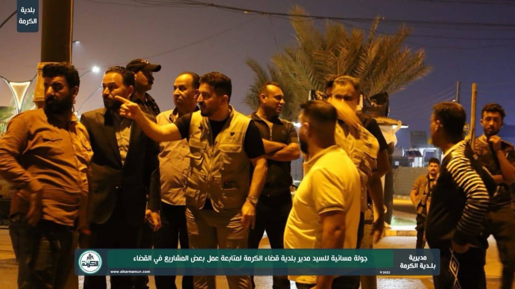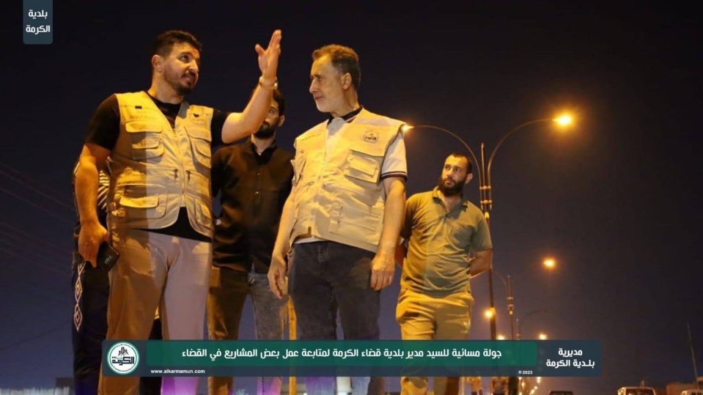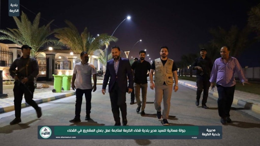 جولة مسائية للسيد قائممقام القضاء الأستاذ رواد الحلبوسي يرافقه السيد مدير بلدية قضاء الكرمة الاستاذ عاهد محمود لمتابعة العمل المسائي داخل القضاء.