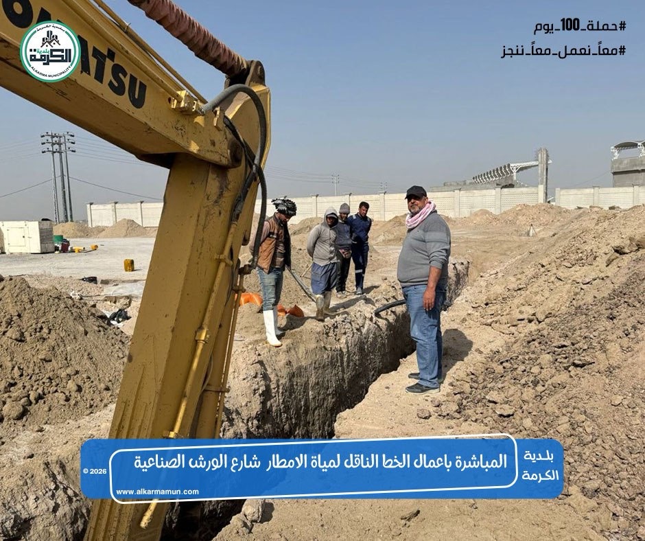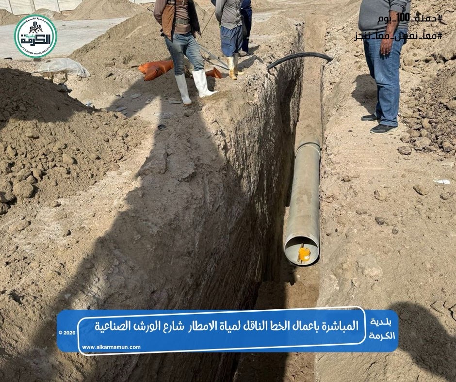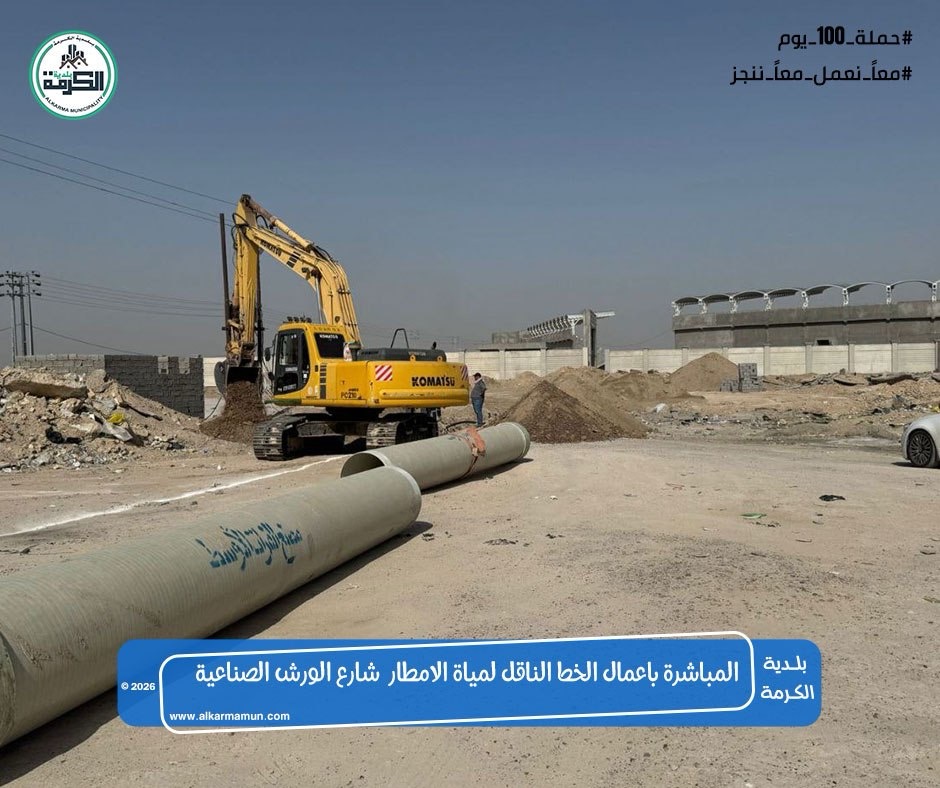 اعمال الخط الناقل لمياه الامطار الخاص بمشروع الشارع المؤدي الى الورش الصناعية مجاور فلكة جسر الكرمة